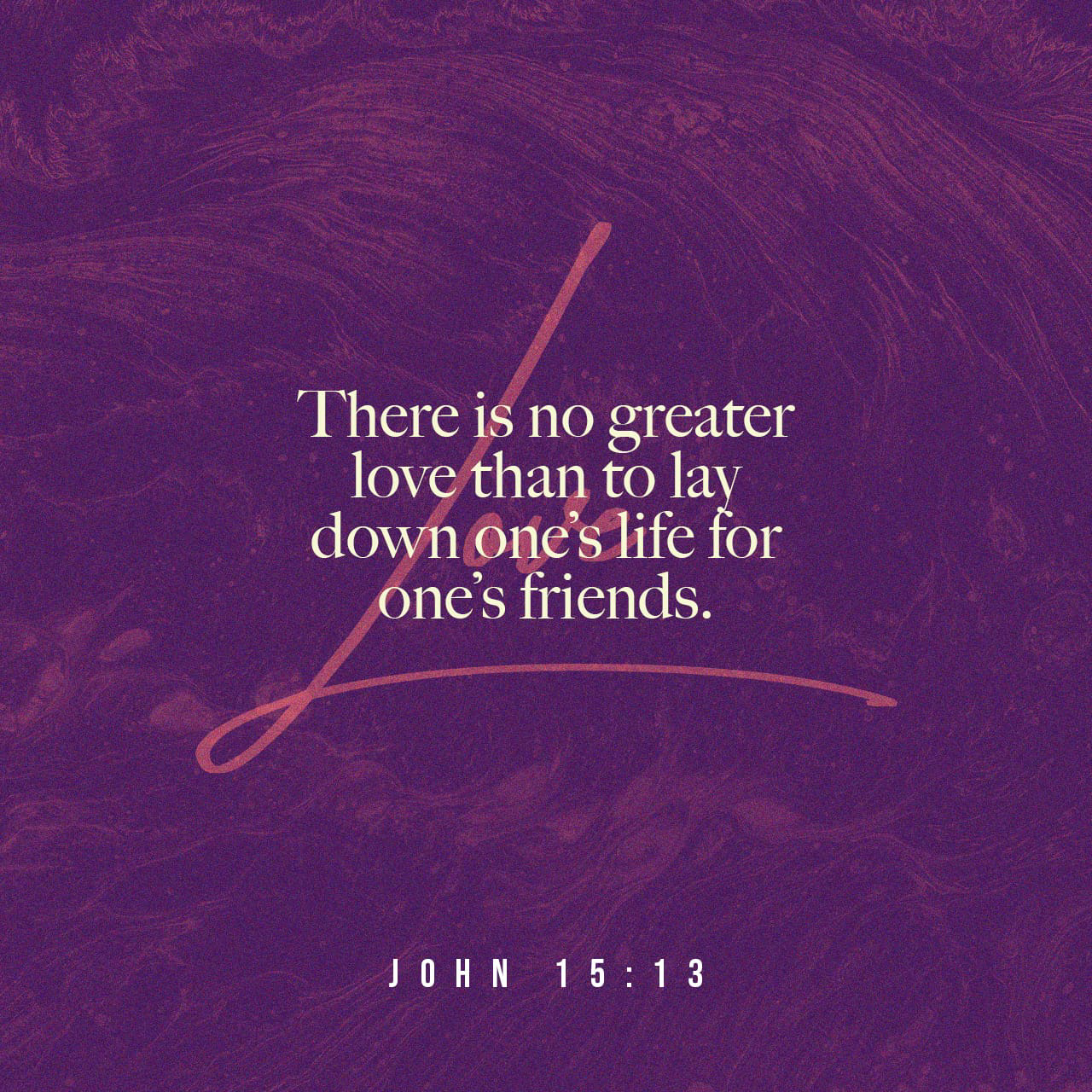 A daily verse. Posted byTia LarsenMay 25, 2020Posted inUncategorizedTags:God, Life, Love, Purpose, sacrifice John 15:13 May we never forget to live with this sort of love, the sort of love Jesus shows us. ♡ Share this: Click to share on X (Opens in new window) X Click to share on Facebook (Opens in new window) Facebook Like Loading... Related